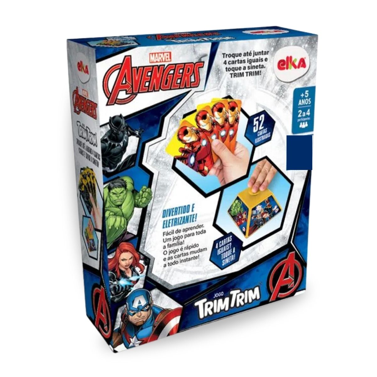 Um jogo de sorte, estratégia e agilidade.. Divirta-se de montão com o Jogo Trim Trim Avengers Marvel da Elka. Embaralhe as cartas e coloque 4 cartas em torno da sineta viradas pra cima, distribua 12 cartas para cada participante.. o importante é cada jogador sempre esteja com 3 montes de 4 cartas em cada. Troque até juntar 4 cartas iguais.. toque a sineta e TRIM TRIM, você é o VENCEDOR!! Divirta-se com toda a família e amigos, o jogo é rápido e as cartas mudam a todo instante.