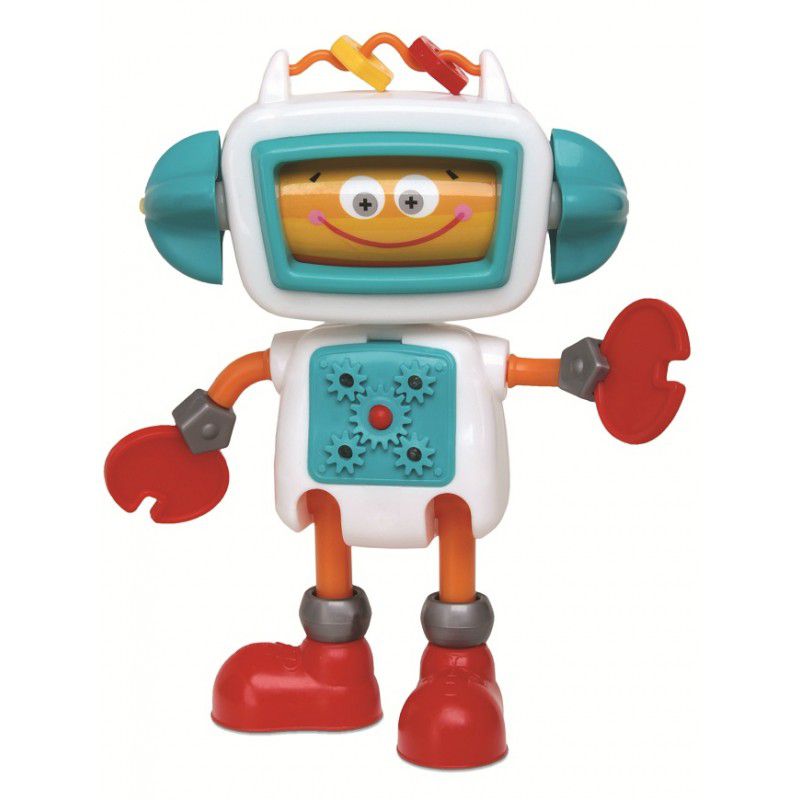 A brincadeira vai ficar muito mais divertida com o simpático Roby. Girando as suas orelhinhas, elas fazem CREC-CREC e ele muda de expressão (alegre, triste, zangado, com sono). Aperte sua barriguinha e ele fala 04 frases super divertidas. O Roby Robô tem os braços e as pernas articuladas.